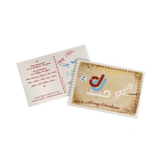 Die Eiskratzer-Postkarte ist das ideale Werbemittel: preisgünstig in der Herstellung, mit einer großen Werbefläche für Ihre Werbebotschaft oder Logo, praktisch vom Nutzen und ganz einfach als Mailing für Ihre Weihnachtsgrüße oder Einladung an Ihre Kunden zu versenden. An vereisten Wintertagen ist der Eiskratzer täglich im Gebrauch, sodass Ihr Unternehmen immer im Blickfeld des Kunden bleibt. Der Eiskratzer ist flach, rechteckig und mit Kratzzähnen und glatter Kratzkante ausgestattet. Ein idealer Artikel für ein Mailing, das im wahrsten Sinne des Wortes gut ankommt.