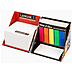 Sie wollen Ihr Unternehmen mit einem auffälligen Werbemittel promoten? Dann werfen Sie einen Blick auf diesen vielseitig einsetzbaren Büro-Werbeartikel im individuellen Unternehmensdesign. Das kleinste Büro der Welt bietet Ihnen alles was Sie an Ihrem Schreibtisch benötigen. Ausgestattet mit einem 380 Blatt Notizblock mit 7,2x6,5cm. Hierauf können Sie wichtige Informationen oder Ideen notieren. Mit den integrierten Index-Markern in fünf auffälligen Neon-Farben und jeweils 25 Stück können Sie wichtige Dokumente und Seiten markieren. Praktische Haftnotizen um besondere Notizen an Ihrem Arbeitsplatz festkleben zu können, sind hier mit 25 Blatt und den Maßen 6,8x4cm ebenfalls enthalten.