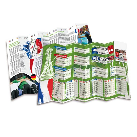 Alle Spielplaner können individuell mit Ihrem Logo oder Ihrer Werbebotschaft bedruckt werden. Für die komplette Dauer der Europameisterschaft ist Ihre Werbebotschaft also immer "griffbereit und genießt eine hohe Aufmerksamkeit. Unsere Spielpläne sind ein idealer Streuartikel zur EM 2016.