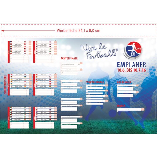 Praktische EM Planer im Hosentaschenformat mit Ihrer Werbung bedruckt: