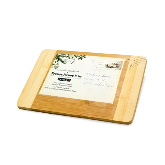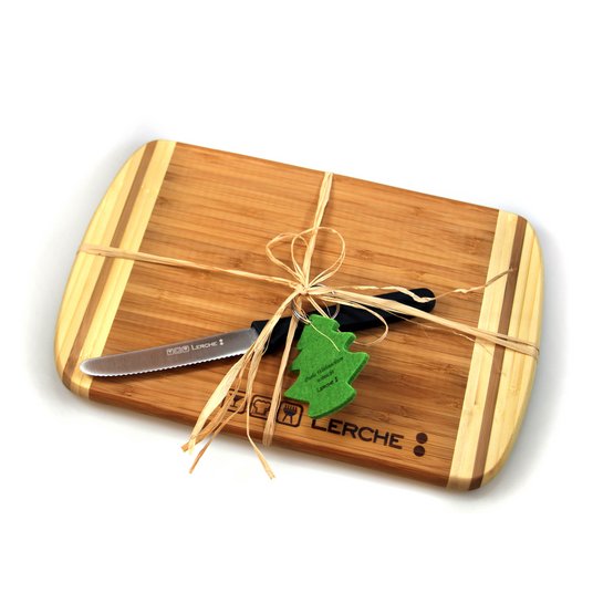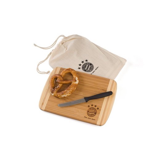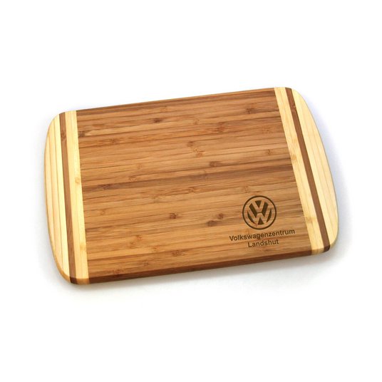 Ob nach einer anstrengenden Wanderung auf eine Hütte oder im gemütlichen Heim: Brotzeit muss sein! Auf unseren praktischen, gestaltbaren Bambusbrettchen ist genug Platz für gutes Brot, scharfe Salami, würzigen Käse oder Gewürzgurken. Mit dem Maß 30 x 20 x 1,6 cm wird außerdem zusätzlich Ihr Firmenlogo optimal in Szene gesetzt. Lassen Sie dieses massive Schneidebrett aus robustem Bambusholz individuell mit Ihrem Logo und Firmennamen designen und werben Sie somit erfolgreich für Ihr Unternehmen. Das Brett ist zudem noch in 2 anderen Größen erhältlich, nämlich 23 x15x 1cm und die größere Variante 40 x 30x 1,6cm. Sie können zwischen zwei verschiedenen Hervorhebungsmöglichkeiten wählen: Brandstempel (Einbrand) und Lasergravur. Dieses zweifarbige Schneidebrett aus nachhalötigem Bambus ist ein ideales Geschenk, um Ihren Mitarbeitern eine Freude zu machen. Auch bei besonderen Anlässen wie Jubiläen, Firmenfeiern oder Neueröffnungen ist dieses Brettchen ein absoluter Hingucker. Auch für unseren Premium-Kunden FC Bayern München aus der Fussball Bundesliga, hat sich für dieses praktischen und langlebigen Bambusbrett mit Logo-Einbrand inklusive Brotzeitmesser und Brotzeitsackerl entschieden.
