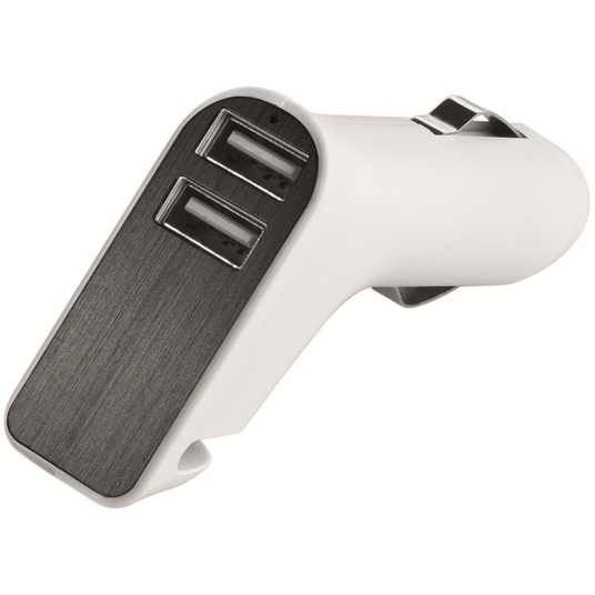 Wer kennt es nicht? Man sitzt im Auto und bemerkt, dass der Handyakku sich dem Ende neigt. Genau für dieses Fall gibt es den Adapter für das Auto mit zwei USB Lademöglichkeiten, eins für das Handy das andere für beispielsweise ein Tablet. Aber nicht nur dafür ist das Aufladegerät gut, sondern es sorgt auch für Ihre Sicherheit, mit integriertem Scheibenzertrümmerer und Gurtcutter für den Fall, dass Sie in einen Unfall verwickelt sein sollten.