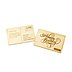 Die Holzkarte mit individueller Laserung können Sie personalisiert einfach per Post an Ihre Gäste versenden. Damit Ihnen bei der Versendung kein weiterer Aufwand entsteht, übernehmen wir von Lerche: gerne die gesamte Abwicklung von der Veredelung über die Personalisierung und Frankierung bis zum Versand. Auch die Adressdaten können direkt auf die Grußkarte gelasert werden. So erhalten Sie eine einheitliche Linie und ein klares Design der Einladungskarte.