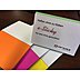 Das beschriftbare Haftnotiz-Set im Kartoncover besteht aus insgesamt 100 Blatt, hat ein Format von 100 x 69 mm und wiegt 300 g. Ihre Werbeanrbingung kann vollflächig auf den Maßen 100 x 69 mm mit einem Druck in bis zu 4 Farben realisiert werden. Die Mindestbestellmenge liegt bei 100 Stück. Die Lieferzeit beläuft sich auf 4 Wochen nach Freigabe.