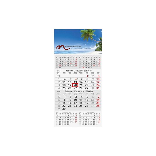 Der bedruckbare Kalender kann auf ein B4-Großbrief-Format zusammengefaltet werden, sodass Sie den Kalender per Post an Ihre Kunden versenden können. Der praktische Wandkalender ist ab einer Mindestbestellmenge von 50 Stück erhältlich. Die Lieferzeiten betragen 3-4 Wochen je nach der gewählten Druckart.
