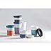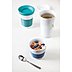 Platzsparend stapelbar: Dank des einfallsreichen Designs lassen sich die Becher problemlos ineinander und aufeinander stapeln. Beim Design wurde sich auch in Sachen Funktionalität Gedanken gemacht: Durch den tiefeingesetzten Deckel lässt sich auch der letzte Tropfen des Heißgetränks problemlos daraus trinken, so dass der Deckel nicht, wie bei anderen Bechern, direkt an der Nase anliegt und man den Kopf in den Nacken legen muss, um den letzten Schluck zu trinken - clevere und praktische Idee der Designerin. Dem Kaffeegenuss sind so keine Grenzen gesetzt. Die Coffee to go Becher von Kahla haben ein Fassungsvolumen von 0,35 Liter und 0,47 Liter.