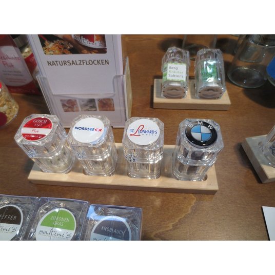 Kuschelig weich im Spiel- oder Streifendesign sind unsere Fleece-Decken. Hochwertige Lineale aus verschiedenen Materialien, z.B. Aluminium oder ein Alulineal mit Kunststofffarbeinsatz, flexiblem Kunststoff und Holz, 4-farbig zu bedrucken. Alles aus Frottee! Praktische Kosmetiktaschen, Babylätzchen und Handtücher mit Werbe- und Bordüren-Einwebung. Wärmende Kirschkernkissen und Aroma-Körner-Kissen. Das 4-farbig zu bedruckende Trend-Material Resopal, fälschlicherweise häufig Melamin genannt, ist vielseitig einsetzbar. Als Frühstücksbrett 4c vollfarbig bedruckt in verschiedenen Formen eckig, rund oder mit individueller Kontur oder als Kindergeschirr-Set einsetzbar. Werbetafeln und Aufsteller bedruckt mit Ihrem Firmenlogo für den Gastronomie-Bedarf oder der Getränkeindustrie. Saltinis Natursalzflocken für die Gourmetküche in Metall- oder Glas-Salzmühle mit Keramikmahlwerk und individueller Werbeanbringung mit Logo-Doming auf dem Deckel und individuellem Etikett. Die Saltinis können auch als Geschenk-Set mit Olivenöl verpackt verschenkt werden. Reparatur-Sets 2-teilig, Fahrradwerkzeuge, Flickzeug für Fahrrad und Mini-Tool Werkzeugstift. Für die Pharmaindustrie bieten wir vollflächig bedruckte Fußmatten für Arztliegen, bedruckte Gel-Pads zum Wärmen oder kühlen „Hot-Cool“ oder bedruckte Einmalkühlpads.