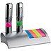 2-in-1: Marker-Ständer mit integrierten Haftmarkerstreifen. Das perfekte Arbeitsmittel für all diejenigen, die auf Genauigkeit großen Wert legen, denn mit den Markern und Markerstreifen ist für schnelle Notizen und wichtigen Hinweisen alles in Griffweite. Eine kreative Lösung durch die Kombination von zwei "Bürohelfern". Der Ständer ist 13 x 7 x 11,5 cm groß und kann auf einer Fläche von 5 x 3 cm mit Ihren individuellen Werbebotschaften bedruckt werden.