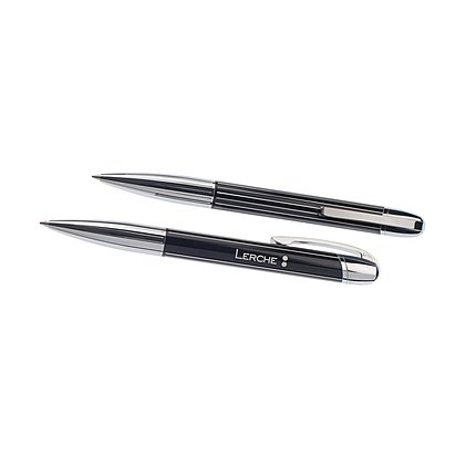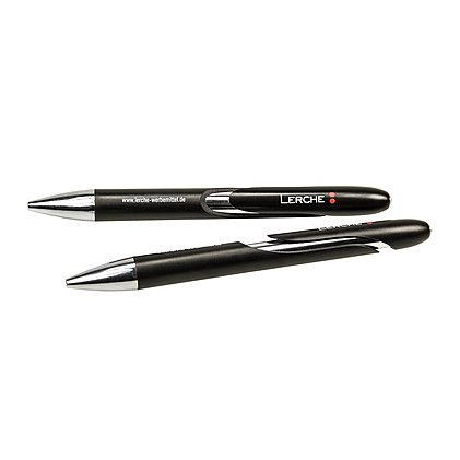 Dies in Kombination mit unseren verschiedenen Werbeanbringungsmöglichkeiten Ihres Logos bedeutet für Ihr Unternehmen das perfekte Werbemittel. Unsere Werbeartikel werden mittels Lasertechnik, Siebdruck, Tampondruck, Folientransferdruck oder Digitaldruck mit Ihrem Logo individuell veredelt. Den hochwertigen und mit Logo bedruckten Kugelschreiber "Straight" gibt es bereits ab einer Mindestbestellmenge von 100 Stück. Er ist in den Farben schwarz, weiß, blau, gun anthrazit und silber erhältlich. Die Lieferzeit beträgt ca. 3-4 Wochen nach Freigabe. Sie haben einen Fix-Termin? Fragen Sie nach unserem Express-Service. Nutzen Sie auch unser Zubehör, um Ihren bedruckbaren Kugelschreiber optimal in Szene zu setzen und als Werbegeschenk für z. B. Geburtstage, Jubiläen oder Weihnachten an Ihre treuen Kunden, Mitarbeiter oder Firmenpartner zu verschenken. LERCHE: Ihr Spezialist für bedruckte hochwertige Kugelschreiber. Fragen Sie nach unseren verschiedenen Ausführungen und kostenlosen Qualitäts- und Druckmustern. Das LERCHE: Team berät Sie gerne über die unterschiedlichen Werbeanbringungsmöglichkeiten auf unseren bedruckbaren Kugelschreibern mit Ihrem Firmenlogo oder Produktnamen.