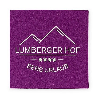 Wir stellen Ihnen auch gerne ein komplettes Tisch-Set mit Firmennamen oder Logo zusammen. Für die Hotel Lumberger Hof GmbH in Grän, Österreich, haben wir die Filzuntersetzer in flieder mit einem hellgrauen Logodruck im Siebdrucktransferverfahren als Werbemittel umgesetzt. Dekorieren Sie mit diesen Wollfilz-Untersetzern Ihren Messestand oder die Tischdekoration auf Kundenveranstaltungen, Konferenzen oder Tagungen. Als Tisch-Set auch ein trendiges Werbegeschenk für Ihre Kunden, Mitarbeiter oder Geschäftspartner. Ein Werbemittel für Home & Lifestyle, für die Gastronomie, Hotellerie, Eventmanagements und Agenturen. Ideal für alle Unternehmensbranchen, für Industrie, Handwerk, Handel, Banken und Versicherungen. Perfekt für Cafés, Bistro, Restaurants und die Hotellerie. Bei diesem Artikel handelt es sich um ein Produkt aus der Lerche: Filzmanufaktur. Lerche: ist Spezialist im Bedrucken oder Besticken von Wollfilz-Werbemitteln zu jedem Thema.