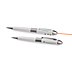 Der mit Firmenlogo bedruckte USB-Stick mit Laserpointer im Metallgehäuse weiß hat eine Länge von 14,68 cm, einen Durchmesser von 1,6 cm und ein Gewicht von 48 g. Zusammengesetzt wird daraus ein hochwertiger Metallkugelschreiber.