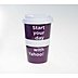 Coffee to go – der Werbemittel-Trend! Auch Yahoo setzt jetzt auf bedruckte Coffee-to-go-Becher aus Porzellan als trendigen Werbeartikel. Umgesetzt wurde der Becher farblich passend zur Corporate Identity von Yahoo und mit klarer Ansage auf dem Becher: “start your day – with yahoo!”. Für jeden den richtigen Becher – für Yahoo vollflächig 1-farbig bedruckt mit 0,35 l Fassungsvermögen, mit weißem Plastikdeckel und mit integriertem Hitzeschutz dank weißer Silikonbanderole. Umgesetzt für den Suchmaschinenanbieter Yahoo gemeinsam mit der Werbeagentur Cube GmbH. Dieser Coffee to go Becher aus Porzellan ist auch in zahlreichen anderen Varianten erhältlich - beispielsweise aus Keramik, mit oder ohne Hitzeschutz aus Silikon, in vielen Größen herstellbar (Mini-Format für Espresso, Standard-Format und Extra-Groß in 0,35 l), mit Plastikdeckel oder Silikondeckel und auch erhältlich mit Auslaufschutz dank Verschluss-Deckel für alle, die ständig in Bewegung sind. Die Mindestbestellmenge beträgt 250 Stück und die Lieferzeit 4-5 Wochen nach Produktionsfreigabe. Alle weiteren Informationen finden Sie auf unserem Preisdatenblatt.