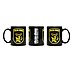 Auf dieser Tasse spiegeln sich die Vereinsfarben wider: Schwarze Glasur, 3-farbig mit dem Wappen des Sportvereins umlaufend bedruckt. Die Fans werden begeistert sein, wenn sie jeden Morgen aus der Kaffeetasse ihrer Idole trinken können. So funktioniert Werbung. Idealer Artikel für Vereine zum Merchandising, zum Beispiel für den Verkauf im Fanshop.