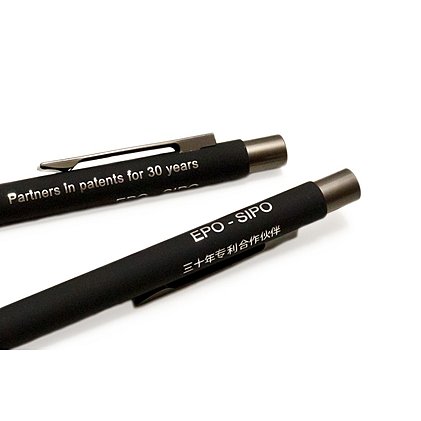 Metall-Druckkugelschreiber „Straight Gum“ lasergraviert, ein perfekter Streuartikel für Ihren nächsten Event. Für das European Patent Office in München haben wir diesen hochwertigen Werbekugelschreiber in der Businessfarbe Schwarz mit eleganter silberfarbiger Gravur veredelt. Auch in den Trendfarben hellblau, dunkelblau, rot, hellgrün, dunkelgrün, grau, violett, magenta, orange, petrol erhältlich.