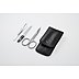 Werbemittel dreiteiliges Nagelpflegeset, Maniküre-Set im schwarzen Etui aus Nappaleder mit Blindprägung - das Original Pfeilring Taschenetui ist mit drei Nagelpflege-Instrumenten aus INOX, einem hochwertigen, rostfreien Material gefüllt. Sie erhalten beste Qualität aus Solingen, bekannt für eine einzigartige Verbindung von Handwerk und Technologie. Der hochwertige funktionelle Inhalt des Nagelpflegesets besteht aus einer Kombischere für Nägel und Nagelhaut in matter Optik, einer Pinzette sowie einer Saphir-Nagelfeile. Für Augustinum, das führende soziale Dienstleistungsunternehmen für Seniorenstifte, Altenpflege und Altenwohnheime in Deutschland, wurde das Unternehmenslogo "Nashorn" auf das edle Lederetui geprägt.