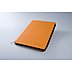 Werbemittel Office und Büro.Strapazierfähige DIN A4 Reißverschluss-Mappe aus flexiblem Vinyl - die hochwertige farbige Schreibmappe aus dem Hause Senator ist eine praktische Ordnungshilfe mit toller Optik! Für die Direktmarketing-Agentur getperformance wurde die Mappe in auffälligem Orange mit einer Logo-Blindprägung versehen. Wichtige Unterlagen sind in dem Organisationstalent immer griffbereit und durch den Metall-Reißverschluss zuverlässig und sicher verwahrt. Die Schreibmappe bietet innen wie außen reichlich Platz für Ihre individuelle, flexible und wirkungsvolle Veredelung: Blindprägung, Lasergravur, Digitaldruck, Farb- und Reliefprägung bringen Logos, Schriftzüge und Grafiken optimal zur Geltung. Damit hinterlässt die Reißverschluss-Mappe einen nachhaltigen Eindruck. Die Schreibmappe ist d e r Ordnungshüter par excellence - in ihm befinden sich Visitenkartenfächer, Stiftlaschen, ein mobiles Kartenetui, 50 Blatt gelbe Haftnotizen, ein weißer Block mit 40 Blatt sowie ein Kugelschreiber in rauchgrau. Die edel anmutende Reißverschluss-Mappe gibt es in acht Farben, vom klassischen Schwarz bis zum trendigen Hellgrün. Sie wird im schwarzen Geschenkkarton geliefert, der ebenfalls individualisierbar ist. Nutzen Sie die Ordnungshilfe als Werbeträger für Seminare, Fortbildungen, Schulungen, Kurse und statten Sie Ihren Außendienst mit einer dieser praktischen Schreibmappen aus.