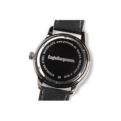 Dieses hochwertige Werbemittel zum Thema Promotion-Uhren, Sportuhren, Mode-Accessoires, wird in einer schwarzen Kunststoffbox geliefert. Das Unternehmen EagleBurgmann, internationaler Dichtungshersteller mit Standort in Wolfratshausen, ließ diese Promotion-Uhr mittels 20 mm großer Lasergravur rückwertig mit Firmennamen veredeln.