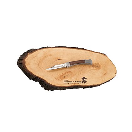 Das rustikale, ovale Rindenbrett hat ein Format von ca. 34 - 37 cm Länge. Mit dem naturbelassenen Baumrindenrand ist es optisch ein echter Hingucker. Der traditionelle bayerische Stil für Tischdekorationen ist zeitlos und liegt immer voll im Trend. Das Werbe-Schneidebrett und Brotzeitbrett mit gelasertem oder gebranntem Firmenlogo passt zum gemütlichem Alpenstil. Mit Ihrem Unternehmenslogo auf dem Rindenbrett ist ihre Werbe-Botschaft täglich auf dem Tisch im Blickfeld Ihrer Kunden. Das geölte Rindenbrett, Schneidebrett und Brotzeitbrett besteht aus einem nachwachsenden Rohstoff und ist deshalb ein ökologisch wertvolles. Jedes der Bretter hat seinen eigenen Charme, denn die grobe Rindenstruktur und feine Holzmaserung ergeben einen schönen Kontrast. Besonders effektvoll ist dieses Rindenbrett als Tischdekoration in urigen, original bayerischen Wirtshäusern und Almhütten.