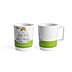 Bedruckbare Werbetassen mit dem gewissen Extra gefragt? Dann gehört dieser Softpad-Kaffee-Becher mit Werbung bedruckt ganz sicher mit dazu. Ideal fürs Büro, auf langen Besprechungsmarathons oder schweigsamen Prüfungen. Immer dort wo laute Geräusche stören, kommt dieser Werbebecher zum perfekten Einsatz. Hier klappert nichts beim Aufstellen, hier kippt nichts um, hier gibt es keine unangenehmen Schmutzränder. All das garantiert der softe Silikonpad am Tassengrund mit seinen kleinen Noppen. Damit haben die ungeliebten Untersetzer ausgedient. Dieser bedruckte Softpad-Mug, Werbetasse mit Logo bedruckt, wird aus Porzellan Markenqualität von Mahlwerck Porzellan hergestellt, schnell lieferbar in trendigen Farben im Hydroglasur-Verfahren nach ihrer Pantone-Farbvorgabe. Mit Ihrem Logo oder Werbemotiv bedruckt, bekommt der praktische Werbe-Becher ein unverkennbares Aussehen. Dazu stehen Ihnen verschiedene Veredelungsmöglichkeiten zur Verfügung, vom mehrfarbigen oder hochaufgelösten Fotodruck, bis hin zur aufwendigen Gravur mit einem haptischen Feeling.