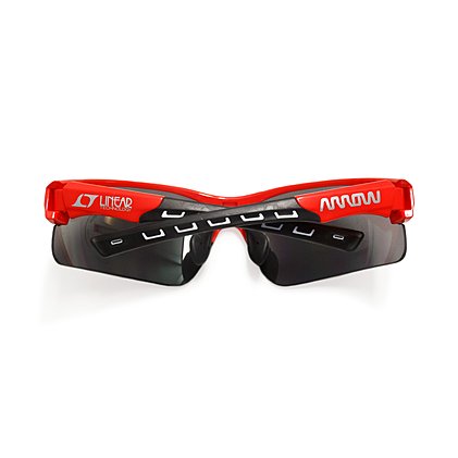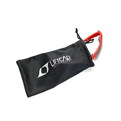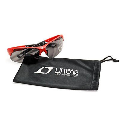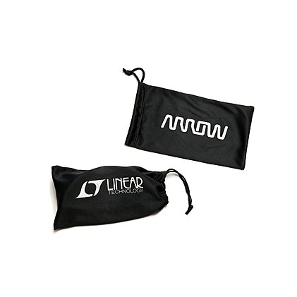 Unser Kunde Linear Technologie hat sich für diese Sport-Sonnenbrille in rot entschieden und auf der einen Bügelseite den Namen und das Unternehmenslogo, auf der anderen „Arrow“, einfarbig in weiß, drucken lassen. Eines der dunkel getönten Gläser ist mit dem Aufkleber unseres Lerche-Labels versehen. Die Größe des Drucks beträgt etwa 2,5 cm. Passend zur Brille gibt es außerdem ein schwarzes Mikrofaseretui mit weißem Logodruck, das außerdem auch zum Säubern der Gläser verwendet werden kann.