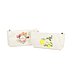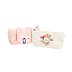 Diese Sonderproduktion nachhaltigen Werbe-Kosmetiktaschen sind mit verschiedenen pastellig farbigen Motiven digital bedruckt. Das erste Motiv für die Pflegeserie mit Mandelextrakt sind rosa-weiße Streifen beziehungsweise Blumen um das Weleda-Logo auf der Kosmetiktasche. Inhalt des Täschchens ist die Gesichtspflegeserie bestehend aus 3 Produkten: besänftigende Reinigungslotion, Öl und Creme.