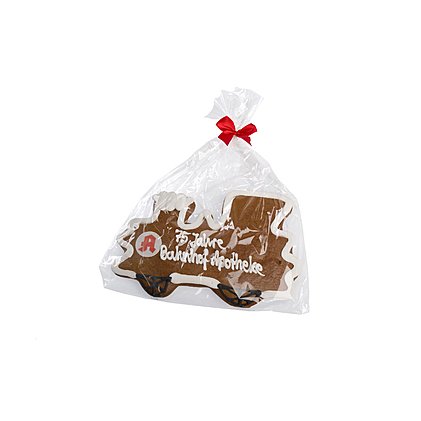 Für unseren Kunden, die Bahnhof-Apotheke, haben wir bedruckte Lebkuchen-Lokomotiven mit zweifarbiger Zuckerguss-Verzierung mit dem Firmenlogo bedruckt. Dieses von Hand verzierte Weihnachtsgebäck ist ein Blickfang für Apotheken, Arztpraxen oder ein weihnachtlicher Streuartikel für den Ladentisch Ihres Geschäfts oder Unternehmens während der Winterzeit, der Adventszeit oder zu Weihnachten, ein schmackhaftes Give-Away, dem Ihre Kunden, Geschäftspartner oder Mitarbeiter nicht widerstehen können. Die leckeren Werbe-Lokomotiven zum Anbeißen sind mit zweifarbigem Zuckerguss verziert und in einer Klarsichthülle mit roter Schleife vor Verschmutzung geschützt. Die Innenfläche des essbaren Werbemittels kann mit dem Aufdruck Ihres Firmenlogos, Ihres Werbeslogans oder mit dem Corporate Design bedruckt werden.